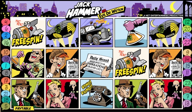 All Australian casino offers Australian players a unique chance in playing some of the best All Australian Casino pokies which cannot be found in any other casino. Thanks to its collaboration with a well-known online gaming software company called Netent, it is able to provide players with a wide online choice of the most entertaining All Australian pokies in the market. One such pokie is the Jack Hammer pokie. This (otherwise referred to as a video slot) is a twenty five line, three-row poking which utilises fifteen independent reels. As in any Netent slot, the games provide an independent theme with characters and symbols linking this theme. The Jack Hammer pokie revolves around the theme of a private detective named Jack Hammer who investigates the disappearance of a woman kidnapped by the evil Dr. Wuten. Among the various characters and symbols that can be found within the game include Jack Hammer himself, the evil Dr. Wuten, a damsel in distress, a paper boy, a newspaper, a telephone, a car and many others. The graphics and animation used to produce the Jack Hammer pokie are similar to those of a comic book strip making the game simple and easy, however this is not the only feature that makes this pokie so unique. Alike any other Netent pokie, players are able to win large sums through the special features such as free spins, wild substitutions, scatter symbols. Among these, the Jack Hammer pokie also offers a feature that is only available in this game alone and that is the Sticky Win.